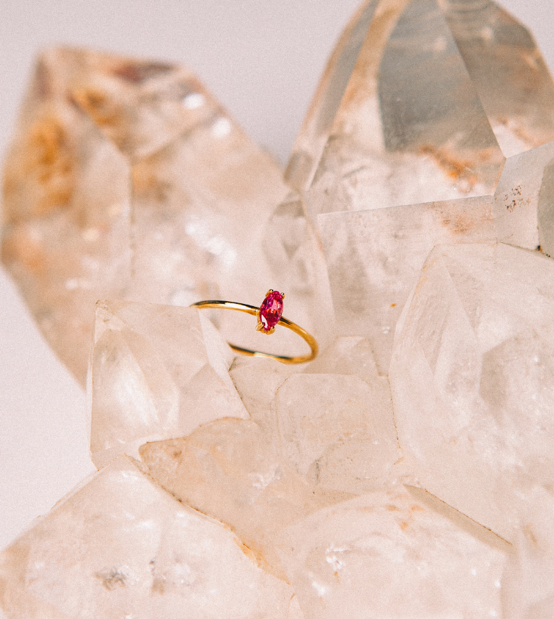 El Anillo Saura en oro de 18k y turmalina rosa natural es una joya que transmite sensibilidad, dulzura y autenticidad. Su diseño fino y atemporal lo convierte en una pieza ideal para acompañarte cada día o regalar(te) un momento especial con significado.